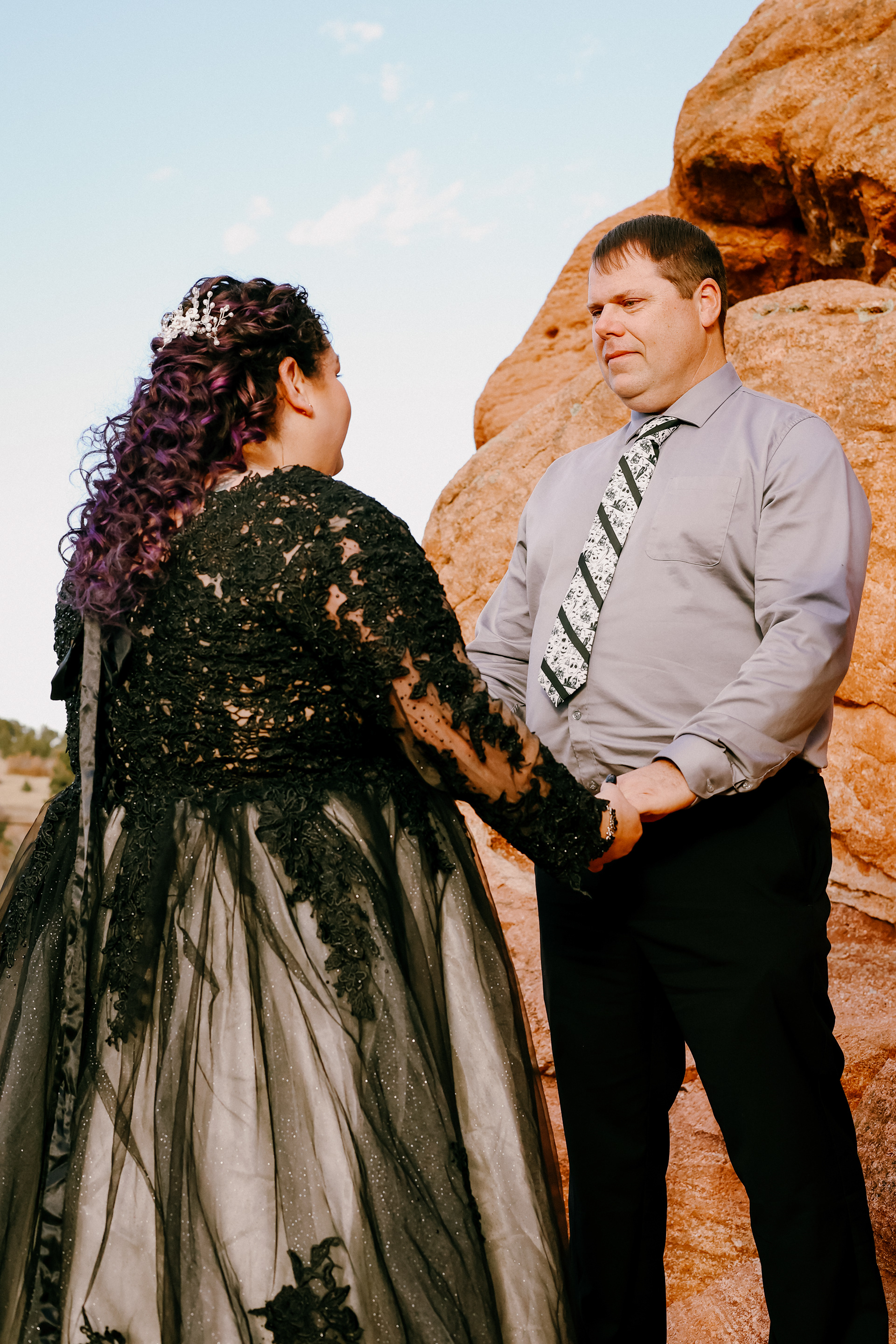 Meagan + Loren -- My absolutely glowingly gorgeous friend, Meagan, married her soulmate to close out my October in one of the most genuine, intimate ceremonies I have been a part of. Afterwards, we explored Garden of the Gods to photograph some portraits. When I tell you these two could not have planned a more perfect ceremony - the Halloween date, The Nightmare Before Christmas theme, every detail in her gown & accessories, Loren’s tie, the location, the lighting. It was stunning. It was magical. & it was them.